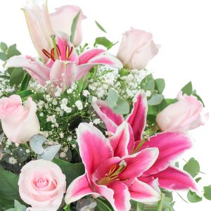 30,00 € - 135,00 €Rango de precios: desde 30,00 € hasta 135,00 €Ramo rosas rosa y lilium fucsia