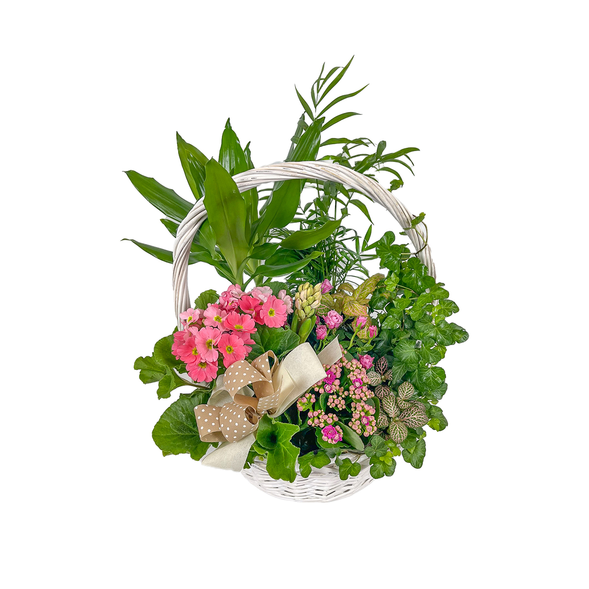 El arreglo cesta de plantas copac es una composición de plantas exóticas de interior compuestas en una cesta de mimbre.