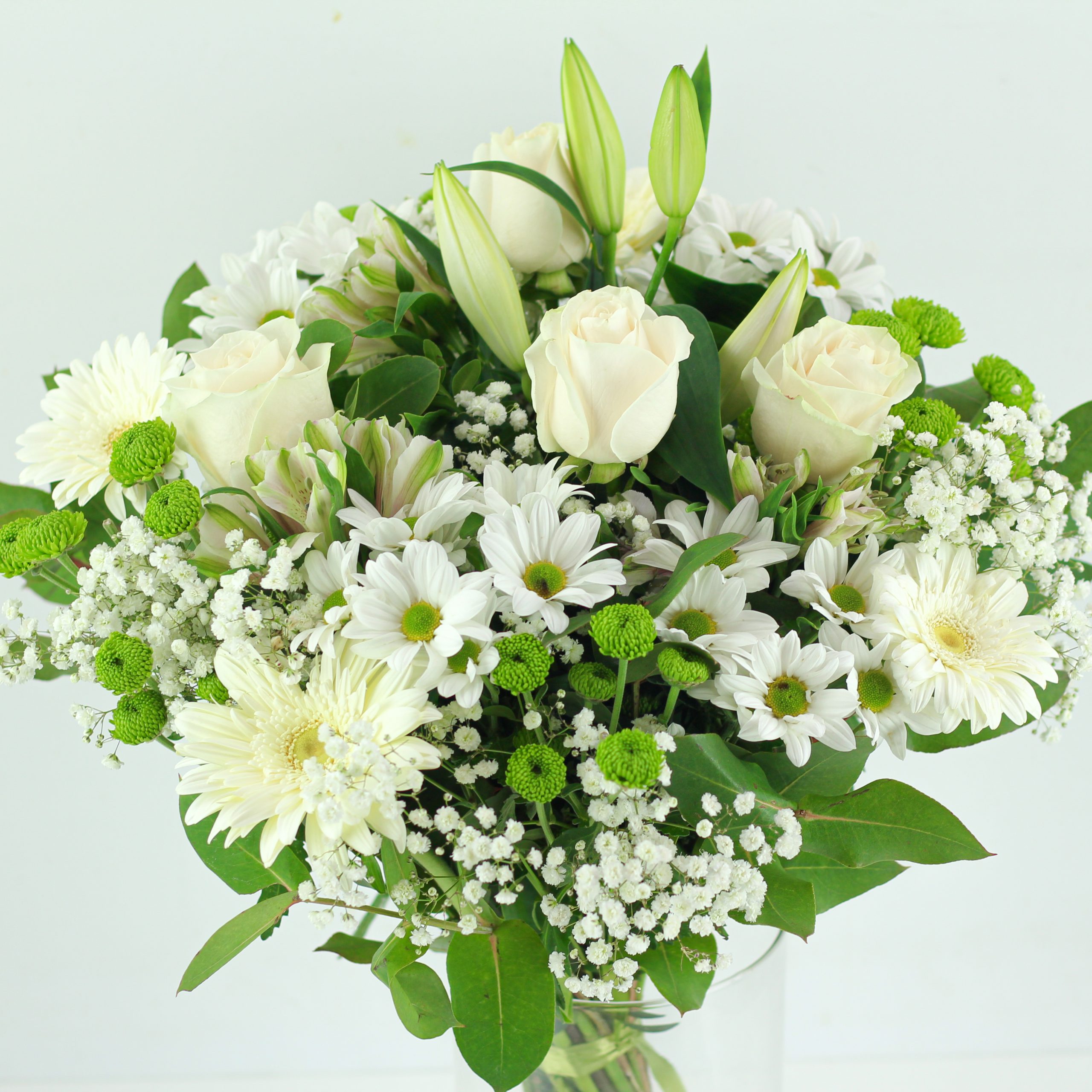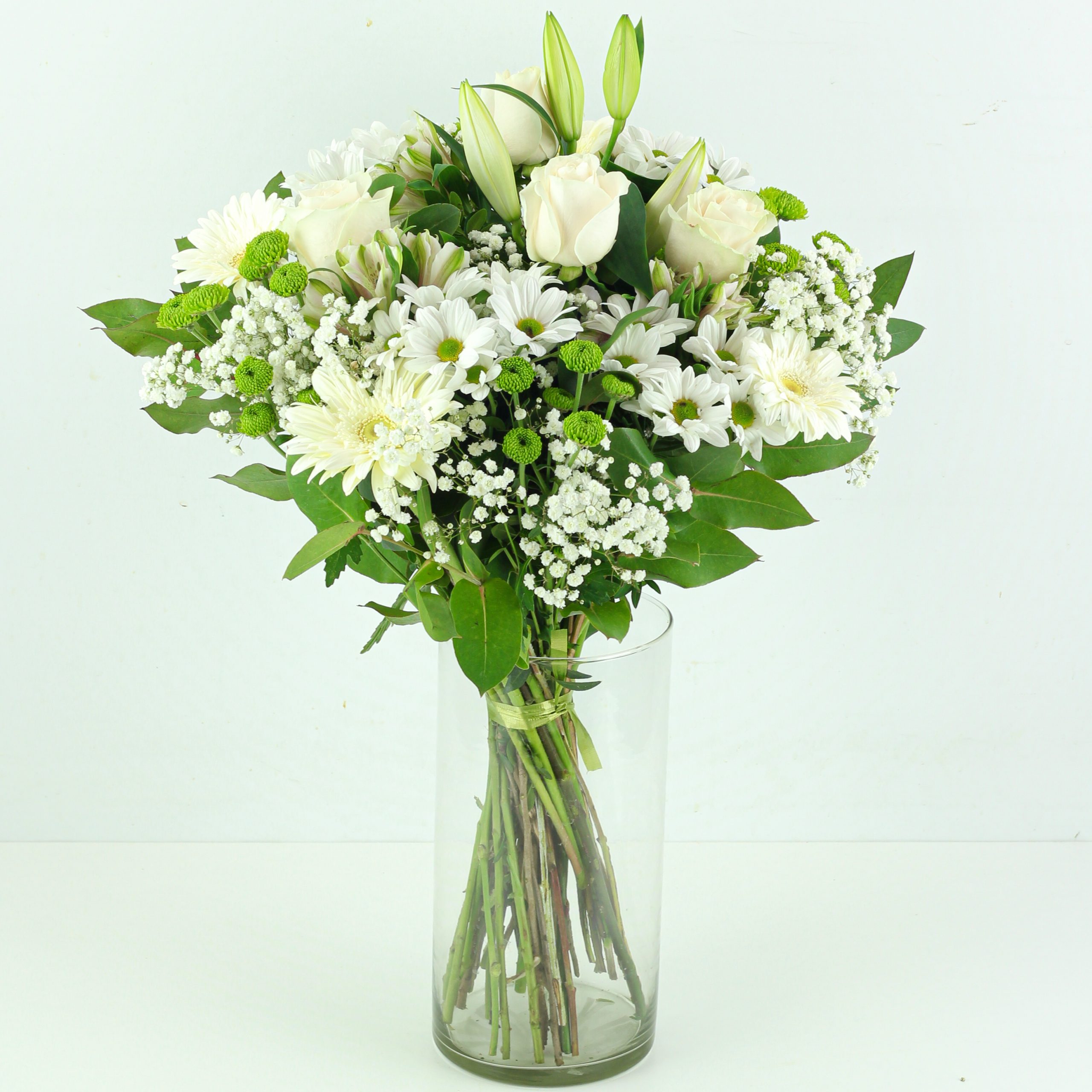 Las flores blancas simbolizan la pureza, la elegancia y la tranquilidad. Un clásico perfecto para cualquier ocasión que nunca falla.