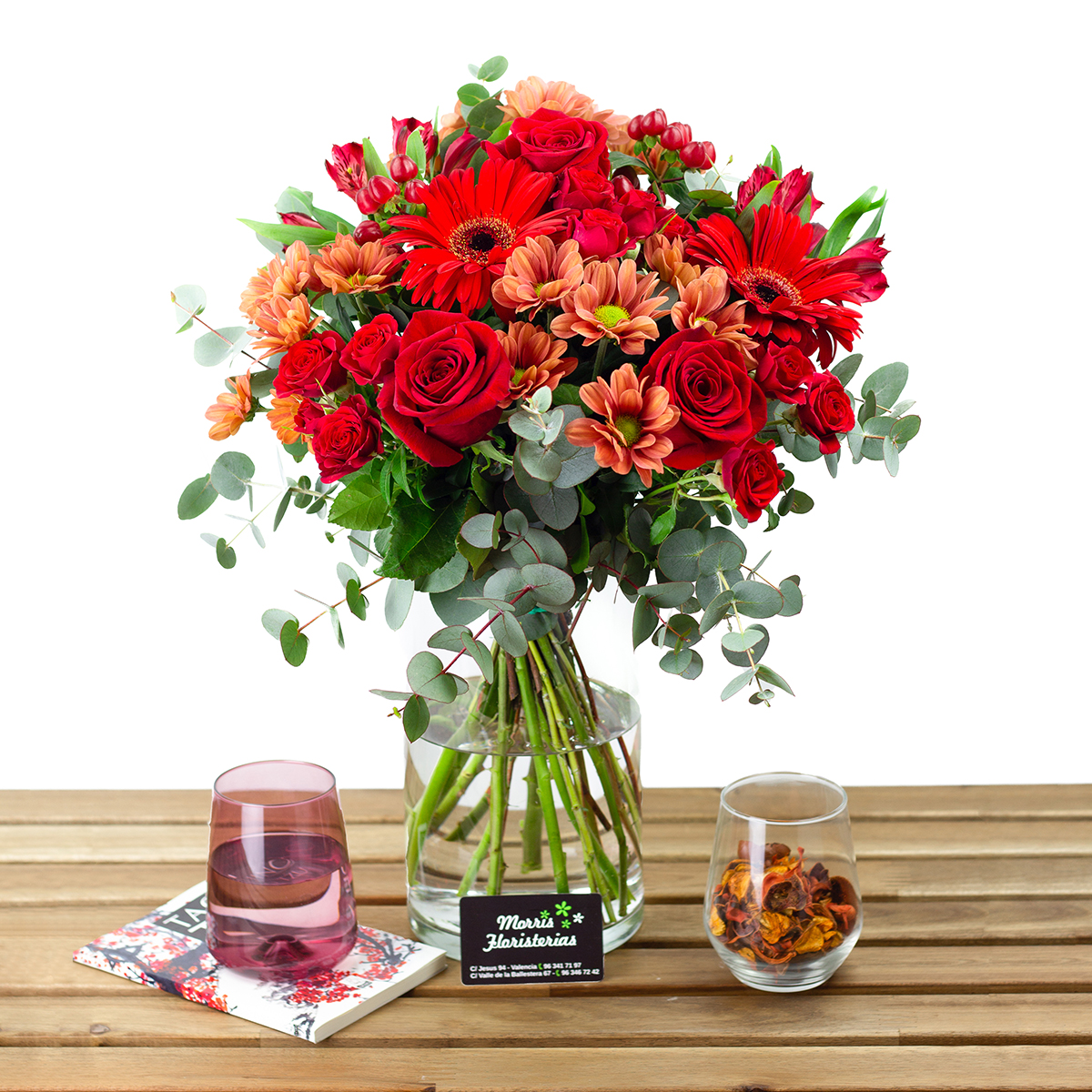El ramo Carmín es un arreglo floral con un surtido de tonos rojos intensos y suaves y que iluminaran el ambiente estén donde estén. Un regalo ideal para transmitir amor o simplemente por su belleza para cualquier evento u ocasión.