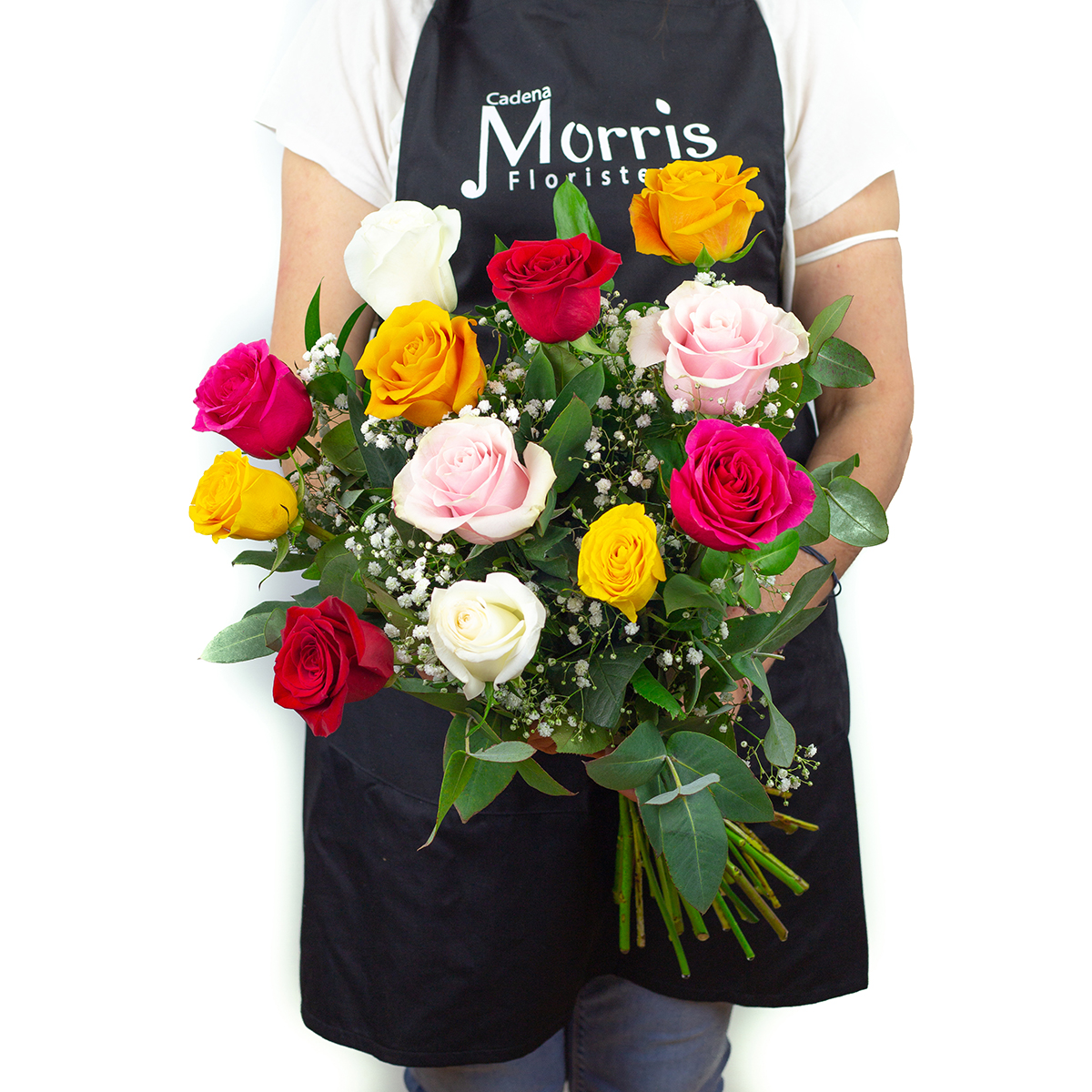 Este precioso ramo de rosas de colores variados es original y muy alegre, llenara de alegría el día esa persona especial. Un regalo perfecto para cualquier ocasión o celebración.