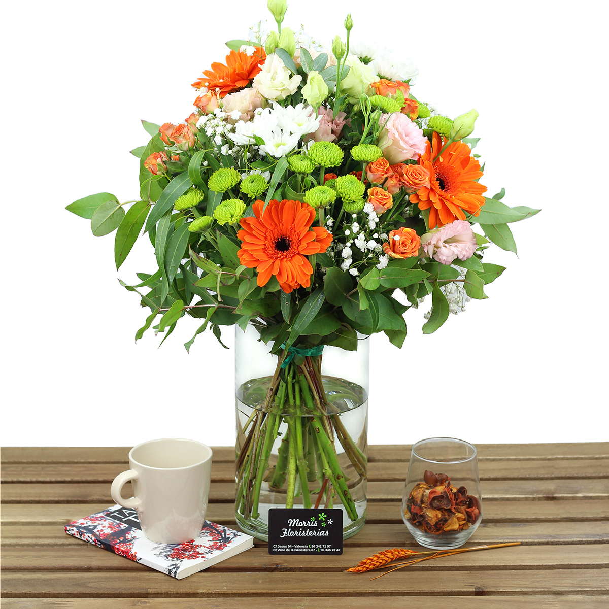 El ramo encanto es un regalo ideal para cualquier evento. Su preciosa combinación de flores variadas con un contraste de color ideal hace de el un hermoso regalo que llenara de ilusión y alegría a esa persona especial.