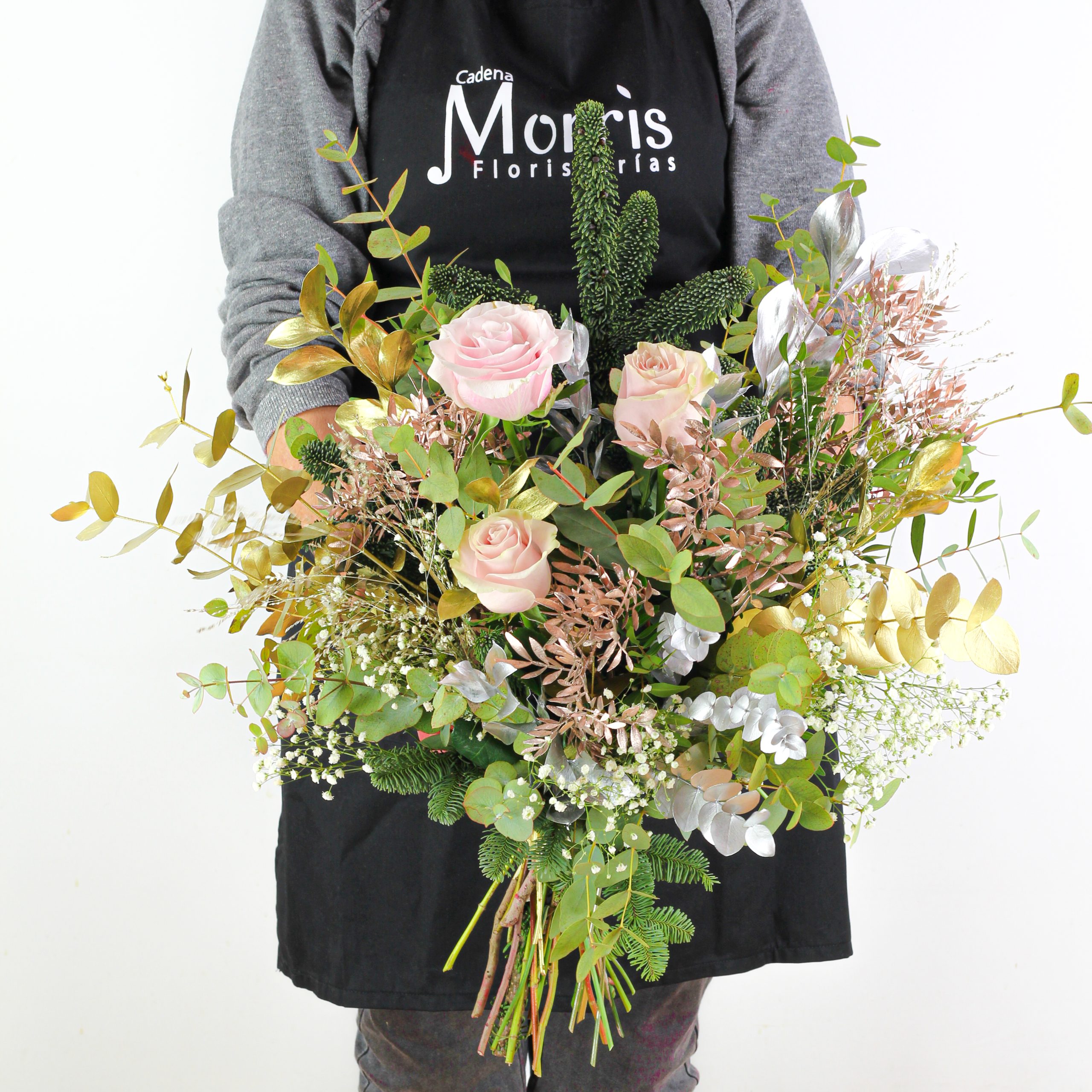 El ramo navidad rosado y dorado es un ramo precioso e ideal para estas fechas tan especiales de navidad. Llena el hogar de esa persona especial de espíritu navideño y alegría con este bonito obsequio de flores frescas. Muchas de las flores de este ramo se pueden dejar secar, por lo que hace de el un detalle duradero.