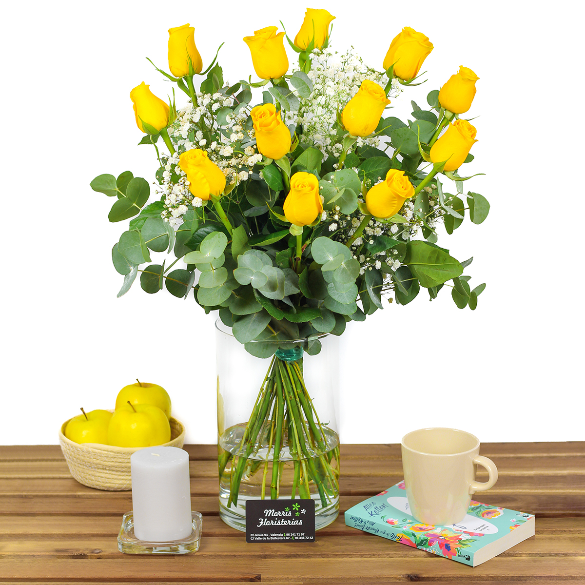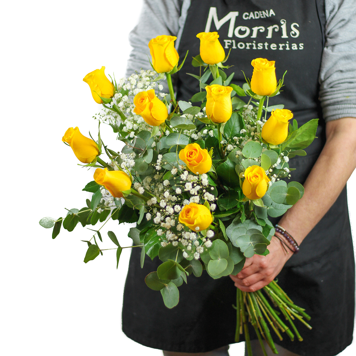 Si todavía no tienes claro dónde comprar rosas amarillas, te recordamos que en Floristería Morris puedes hacerlo, ¡además somos tu mejor opción! Aquí encontrarás las mejores rosas amarillas, cuidadas con el amor y la atención que nos caracteriza y que nos ha permitido crecer a lo largo de los años siendo una de las floristerías con mayor presencia en Valencia. Te damos la posibilidad de comprar el más bonito ramo de rosas amarillas, frescas y recién cortadas para ser enviadas donde nos indiques o para que vengas a por ellas. Nuestros arreglos de rosas amarillas con tallo largo premium se decoran, así mismo, con paniculata y verdes para sorprender a esa persona tan especial con un regalo único. Además, recuerda que tienes la opción de elegir la cantidad de rosas amarillas que prefieres que lleve tu ramo y si lo deseas podemos sustituir algunas flores por una alternativa similar en estilo, calidad y valor. Nuestros floristas con experiencia se encargarán de hacerlo y de enviar rosas amarillas a domicilio que conserven todas sus propiedades aromáticas y estéticas. ¡No dudes en contactar con nosotros ante cualquier duda!