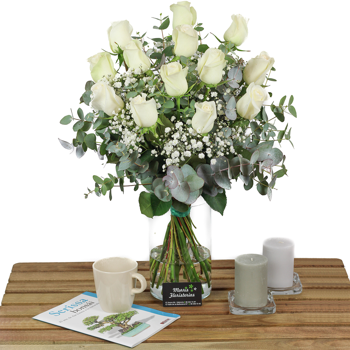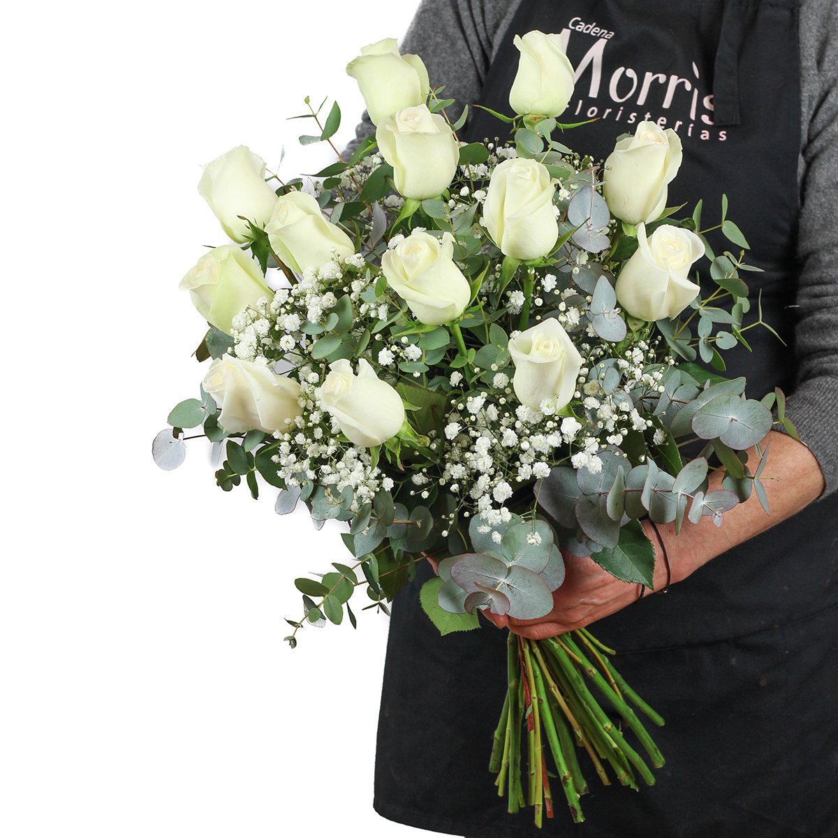 Si te estás preguntando dónde comprar rosas blancas, ya no es necesario que sigas buscando. ¡Has llegado al lugar indicado! En Floristería Morris puedes encontrar los ramos de rosas blancas con tallo largo más bonitos. Preparamos cada uno de nuestros arreglos con el mayor cuidado posible, amor y dedicación, que es nuestra seña de identidad. Nuestros floristas cuentan con años de experiencia en el sector, formación y pasión por lo que hacen. Al comprar un ramo de rosas blancas en nuestra tienda estás comprando rosas premium frescas y recién cortadas, que preparamos al momento de ser enviadas o antes de que pases por ellas, para que conserven todas sus propiedades aromáticas y estéticas. Además, el arreglo con rosas blancas viene acompañado con paniculata y verdes, para resaltar su belleza. ¿Quieres comprar rosas online? En Floristería Morris podrás hacerlo sin problemas, además recuerda que puedes indicarnos la cantidad de rosas que deseas e incluso sustituir alguna flor por otra, ¡consúltanos para informarte!