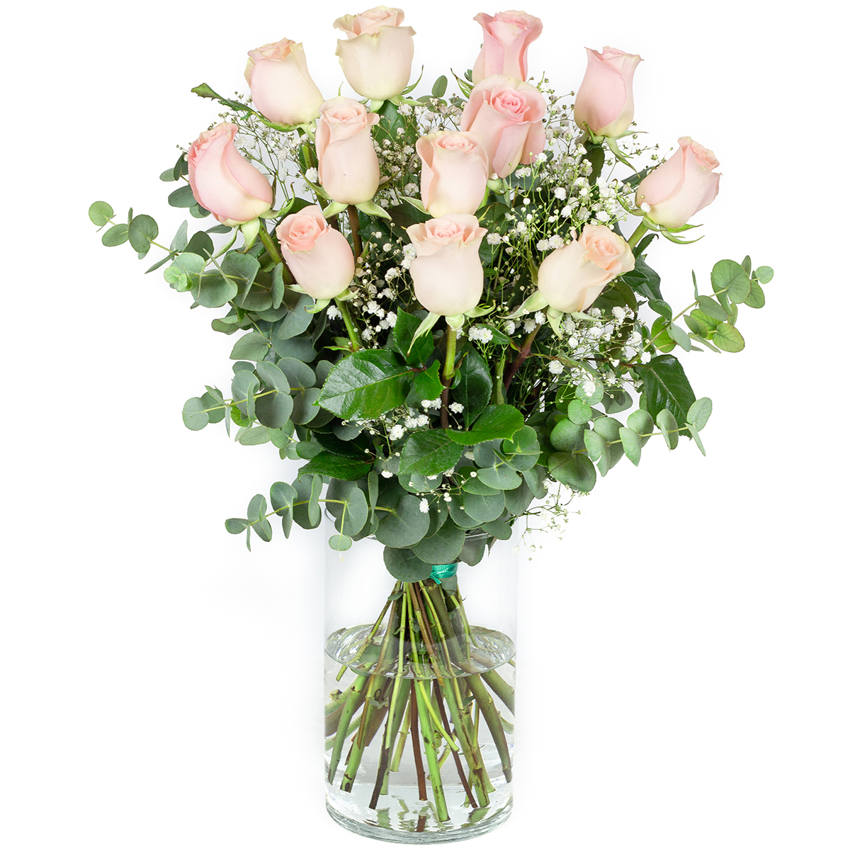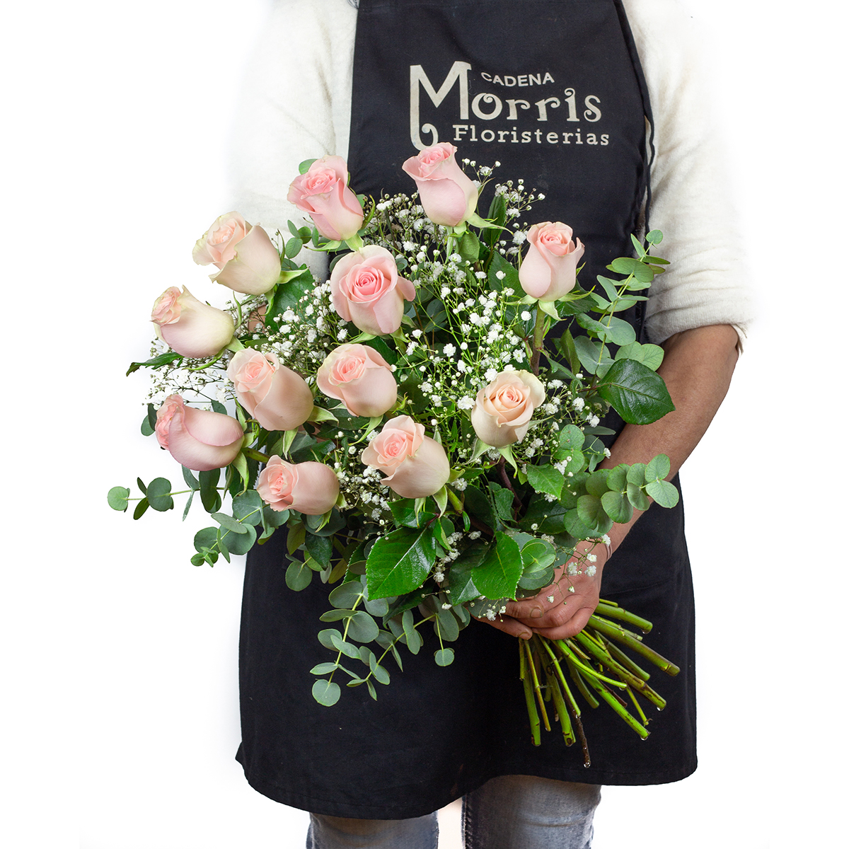 Las rosas rosadas son la mejor forma de expresar tu bondad, simpatía y gratitud a una persona importante y significativa en tu vida, además de demostrarle tu cariño. Este exquisito ramo de rosas rosadas es el regalo perfecto por su dulzura, elegancia y delicadeza, la suave tonalidad rosada es única por su belleza sutil. Desde un gesto romántico hasta un detalle para celebrar la amistad o un aniversario, la elección de este ramo nunca falla. Cada una de las flores rosas rosadas ha sido seleccionada cuidadosamente para garantizar su frescura y calidad. Además, se complementan con un exuberante follaje verde que incluye eucalipto y flores blancas de relleno, como la gypsophila, que aportan un toque de ligereza y armonía al diseño. Esta combinación de texturas y colores que realzan el carácter delicado y romántico del ramo, haciéndolo ideal tanto para decorar un hogar como para sorprender a alguien especial.