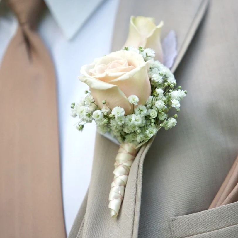 El prendido pitimini blanca es un detalle ideal para llevar a juego con tu ramo de novia para el novio, familiares y otros invitados. Los prendidos van con un imperdible para que lo puedan ajustar con facilidad a sus trajes.