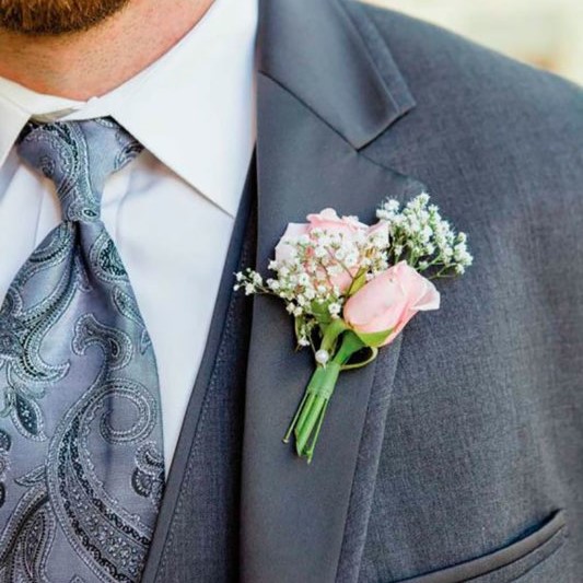 El prendido pitiminí rosa con pani es un detalle ideal para llevar a juego con tu ramo de novia para el novio, familiares y otros invitados. Los prendidos van con un imperdible para que lo puedan ajustar con facilidad a sus trajes.
