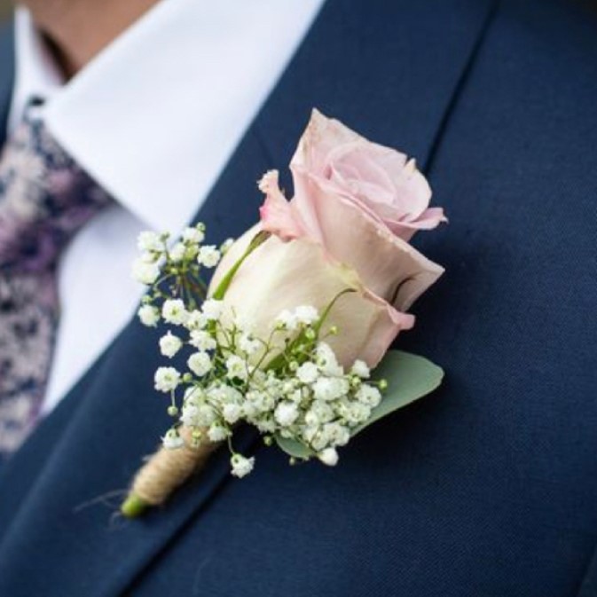 El prendido rosa rosada con pani es un detalle ideal para llevar a juego con tu ramo de novia para el novio, familiares y otros invitados. Los prendidos van con un imperdible para que lo puedan ajustar con facilidad a sus trajes.
