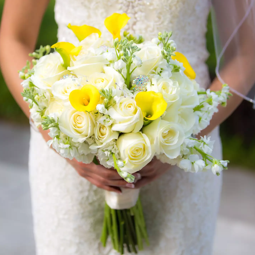 El ramo de novia de solis es un ramo clásico, pero a la vez llamativo. Gracias a su color blanco desprenderá harmonía, pureza y elegancia, su toque amarillo dará energía, alegría y felicidad, mientras que sus flores exóticas llamaran la atención por su auténtica belleza en una de las celebraciones más importantes de nuestra vida.