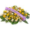 El Almohadón soleado es un centro compuesto por flores variadas con una armonía de colores blancos y amarillos y un surtido de verdes variados. El centro puede tener una anchura aproximada de 80cm a 110cm segun la opción solicitada. Dependiendo de la disponibilidad y la temporada de la flor nuestros floristas profesionales pueden substituir flores por una alternativa conveniente, similar en estilo, calidad y valor.