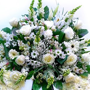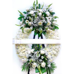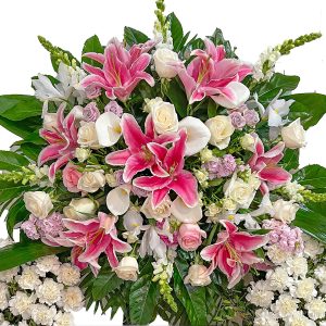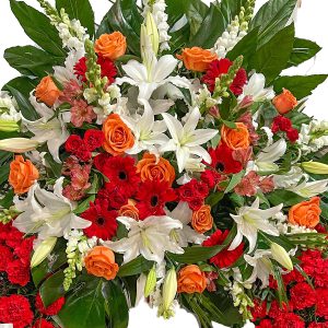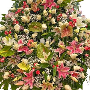 Somos una floristería a domicilio en Valencia y alrededores con varias tiendas físicas en la ciudad (donde también puedes visitarnos). Trabajamos con multitud de variedades de flores, ejemplares auténticos con características genuinas que permiten ser apreciadas en su totalidad. Esa variedad de flores hace que nuestro catálogo de coronas de flores de tanatorio sea tan variado, ofreciendo a nuestros clientes diferentes estilos con distintos patrones de colores y formas para ajustarnos a la situación. Los mejores profesionales con una dilatada experiencia en el sector y el profundo conocimiento del que disponemos en lo que respecta a variedades de flores nos permite ofrecer el mejor y más completo servicio de atención personalizada a cada uno de nuestros clientes, poniendo en su conocimiento las diferentes características de cada tipo de variedad y aconsejándole siempre la mejor opción en función de cada momento. Sabemos que no solo se trata de una cuestión estética: una flor es un producto repleto de bondades en su conjunto que merece ser apreciado como tal. El aroma, el tacto y la textura de sus pétalos se combinan con las formas que se crean en la corona para hacer que esta cuente con un diseño particular, agradable y armonioso, ensalzando todo lo que hace tan especial a las variedades elegidas y remarcando su personalidad. Y, por supuesto, que transmitan paz y solemnidad en un momento tan complicado como es la pérdida de un ser querido. En nuestra floristería online en Valencia podrás encontrar coronas de flores para difuntos a precios ajustados, con dedicatorias especiales personalizadas y preparadas con las flores más bonitas y delicadas.