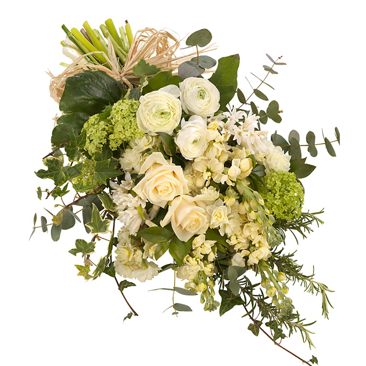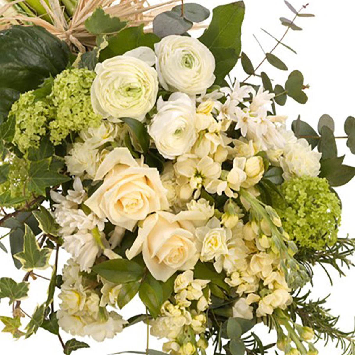 El ramo fúnebre blanco es un ramo compuesto por flores variadas con una armonía de colores blancos y verdes y un surtido de verdes variados. Las imágenes son orientativas, algunas flores pueden variar de aquellas que aparecen en las imágenes según su temporada y disponibilidad. Nuestros floristas profesionales pueden sustituirlos por otra alternativa similar en estilo, calidad y valor.