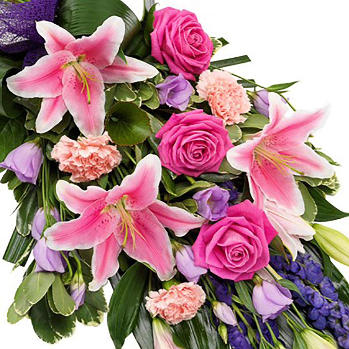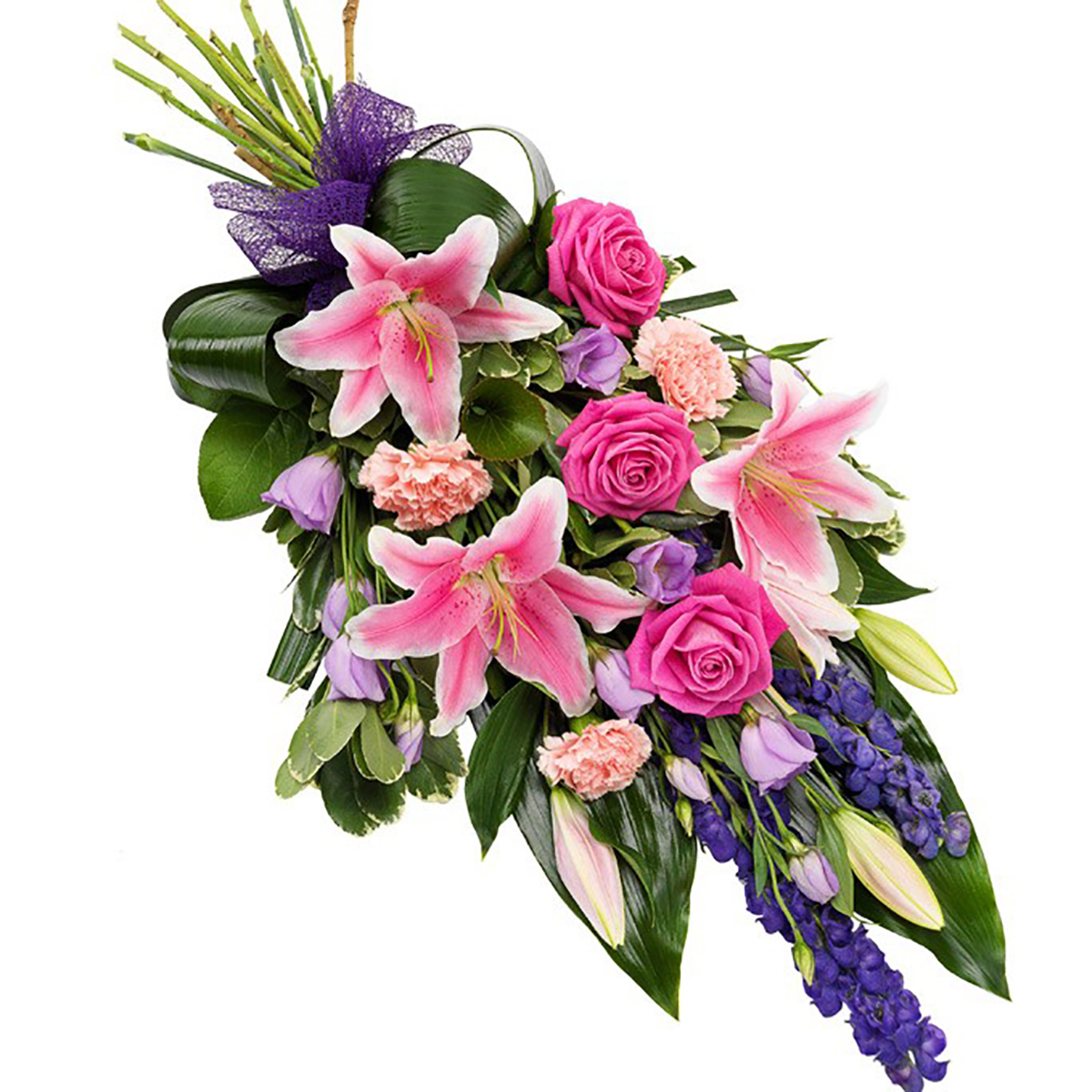El ramo fúnebre brisa es un ramo compuesto por flores variadas con una armonía de colores rosados y fucsias y un surtido de verdes variados. Las imágenes son orientativas, algunas flores pueden variar de aquellas que aparecen en las imágenes según su temporada y disponibilidad. Nuestros floristas profesionales pueden sustituirlos por otra alternativa similar en estilo, calidad y valor.