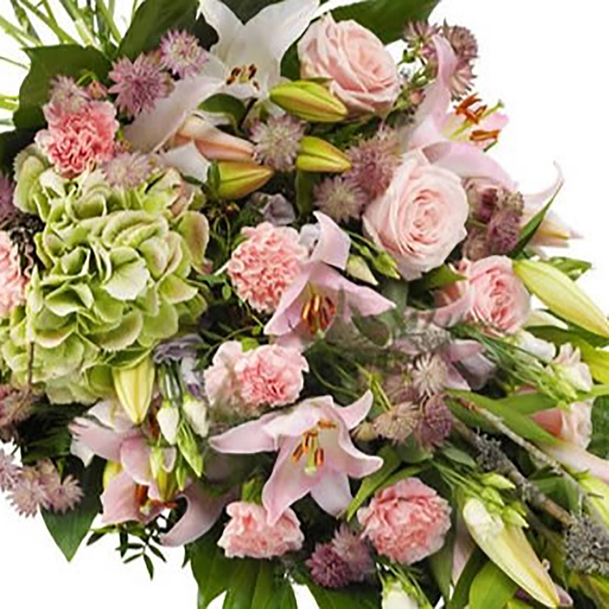El ramo fúnebre rosado es un ramo compuesto por flores variadas con una armonía de colores rosados y verdes y un surtido de verdes variados. Las imágenes son orientativas, algunas flores pueden variar de aquellas que aparecen en las imágenes según su temporada y disponibilidad. Nuestros floristas profesionales pueden sustituirlos por otra alternativa similar en estilo, calidad y valor.